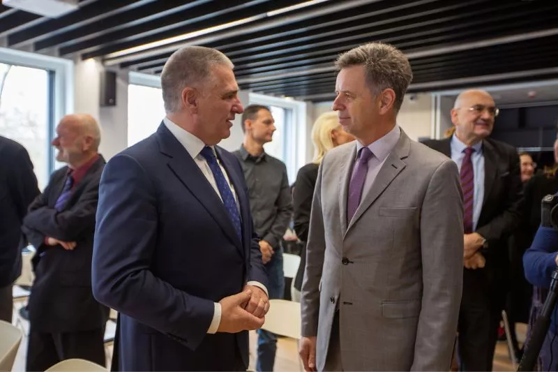 Ljubljana, 12. februar 2024 - Predsednik Državnega sveta Marko Lotrič in državna svetnika prof. dr. Radovan Stanislav Pejovnik in Dejan Crnek so se udeležili slavnostnega odprtja prostorov Biotehnološkega stičišča Nacionalnega inštituta za biologijo (BTS-NIB), s katerimi je inštitut s sodobno raziskovalno opremo in infrastrukturo dobil boljše pogoje za raziskovalno delo ter organizacijo specializiranih strokovnih izobraževanj na mednarodni ravni. Naložbo sta sofinancirali Republika Slovenija in Evropska unija iz Evropskega sklada za regionalni razvoj.