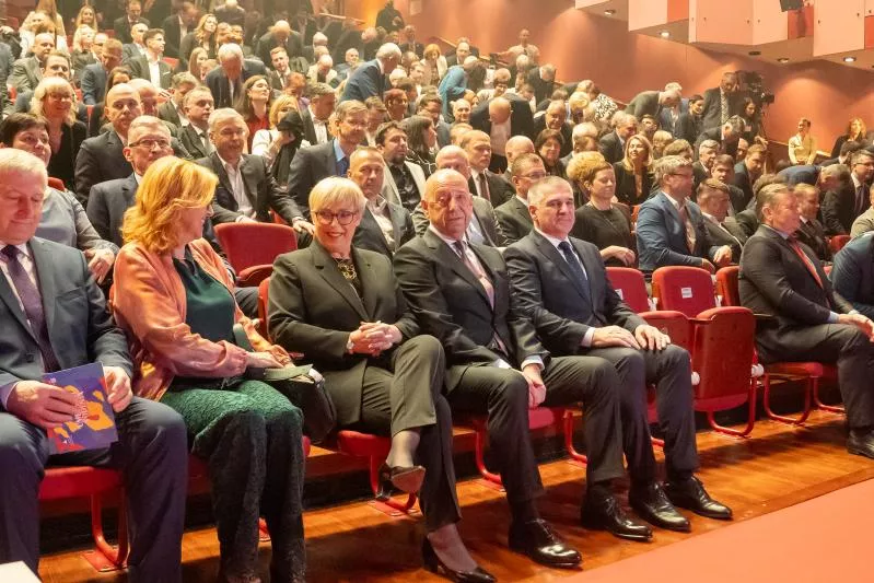 Ljubljana, 5. marec 2024 - Predsednik Državnega sveta Marko Lotrič in državni svetnik Mitja Gorenšček sta se udeležila slavnostne podelitve 56. nagrad GZS za izjemne gospodarske in podjetniške dosežke, ki je potekala v Cankarjevem domu. Rdeča nit letošnje podelitve je bila umetnost vodenja.