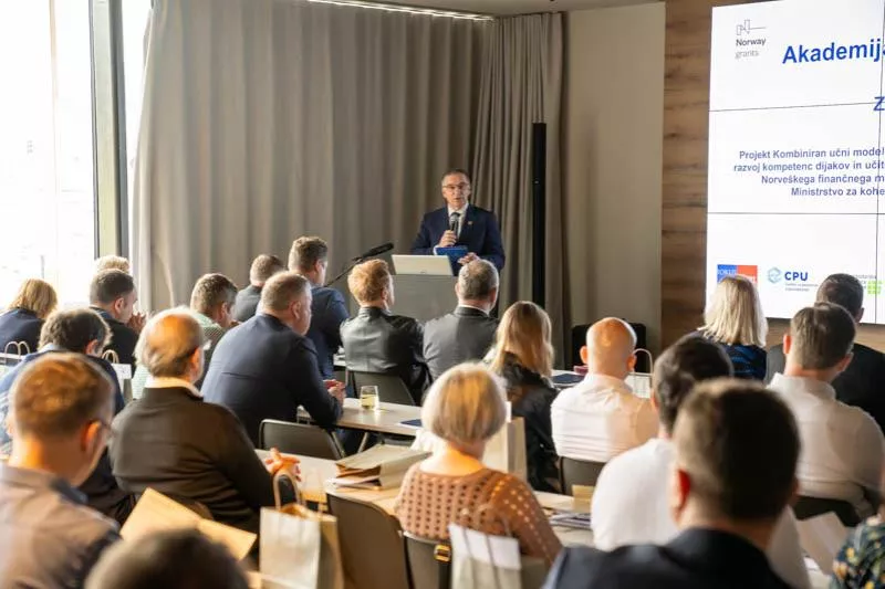 Žalec, 3. april 2024 - Predsednik Državnega sveta Marko Lotrič je bil slavnostni govornik na zaključni strokovni konferenci projekta Akademija za kombinirano učenje.
