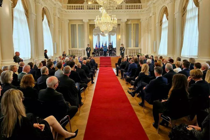 Ljubljana, 8. 5. 2024 - Predsednik Državnega sveta RS Marko Lotrič se je udeležil slovesnosti, na kateri je predsednica Republike Slovenije dr. Nataša Pirc Musar pred dnevom Evrope in v okviru praznovanj 20. obletnice vstopa Republike Slovenije v Evropsko unijo in zvezo NATO podelila tri odlikovanja zlati red za zasluge in tri odlikovanja Republike Slovenije.