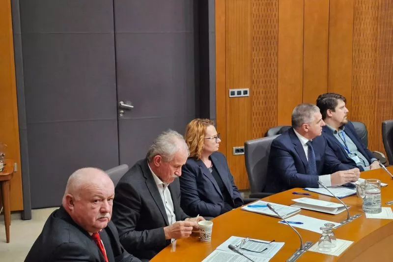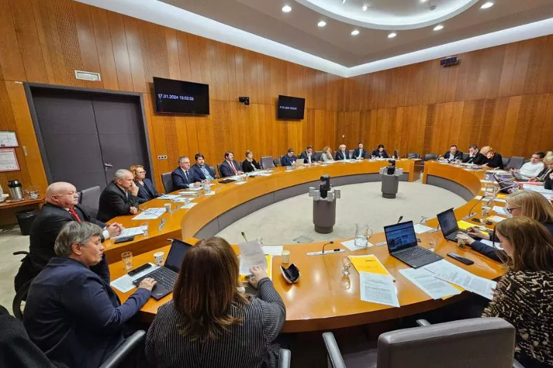 Ljubljana, 17. januar 2024 - Predsednik Državnega sveta Marko Lotrič, sekretarka Državnega sveta mag. Monika Kirbiš Rojs, predsednik Komisije za socialno varstvo, delo, zdravstvo in invalide Danijel Kastelic, predsednik Komisije za državno ureditev Rajko Fajt in predstavnika Pravno-kadrovske službe Državnega sveta Luka Glavač Gavrilović in dr. Domen Končan so se udeležili 16. redne seje Odbora za notranje zadeve, javno upravo in lokalno samoupravo, na katerem je potekala obravnava Predloga zakona o spremembah in dopolnitvah Zakona o volitvah v državni zbor (ZVDZ-E), skrajšani postopek, EPA 1210-IX, ki ga je v proceduro vložila skupina poslank in poslancev koalicije.