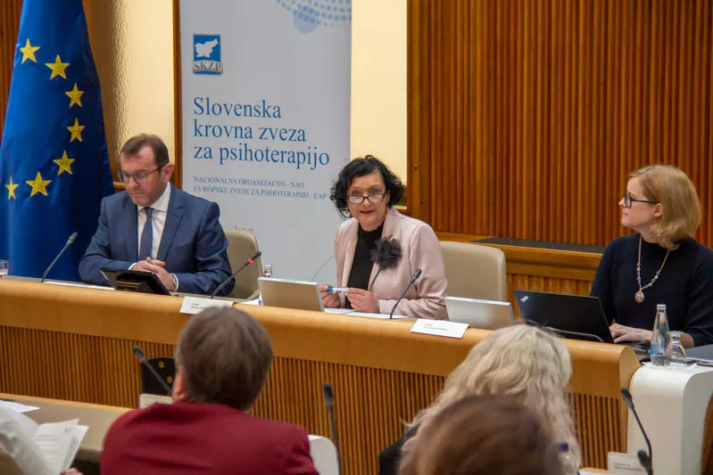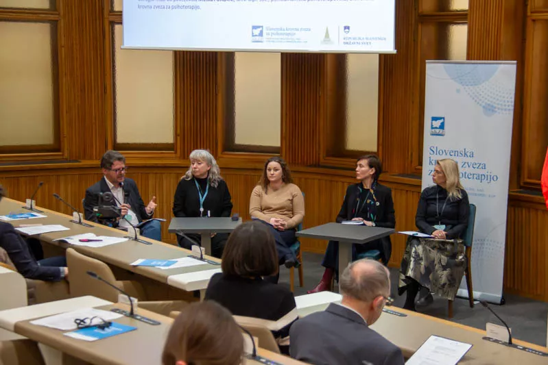 Ljubljana, 5. februar 2024 – V dvorani Državnega sveta sta se v organizaciji Komisije Državnega sveta za socialno varstvo, delo, zdravstvo in invalide ter Slovenske krovne zveze za psihoterapijo (SKZP) odvila posvet in okrogla miza Izzivi psihoterapije v slovenskem prostoru - različni pogledi, skupne rešitve. Namen posveta je bil predstavitev različnih strokovnih stališč na temo psihoterapije s ciljem poiskati skupne rešitve, ki bi pripomogle k enakopravnemu reguliranju tega področja.