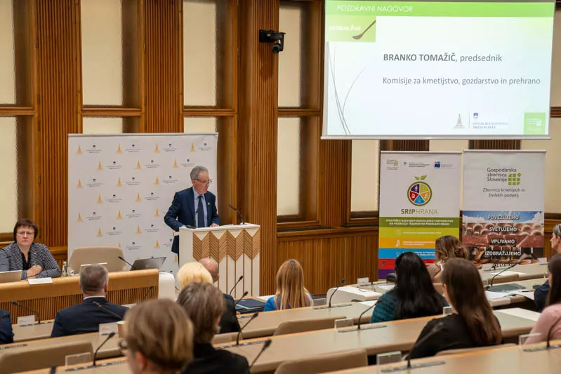 Ljubljana, 12. februar 2024 – V dvorani Državnega sveta se je v organizaciji Komisije Državnega sveta za kmetijstvo, gozdarstvo in prehrano in Gospodarske zbornice Slovenije – Zbornice kmetijskih in živilskih podjetij odvil posvet z naslovom Slovenska hrana v javnih zavodih. Namen posveta je bil osvetliti izzive, s katerimi se srečujejo javni zavodi in ponudniki pri oskrbi z lokalnimi živili, ter poiskati možne rešitve, ki jih je moč udejanjiti le z dialogom med vsemi deležniki v verigi. Trenutno javni zavodi skupaj z javnim sektorjem naročijo za več kot 200 milijonov evrov hrane letno, pri čemer se srečujejo z resnimi izzivi pri izpolnjevanju zahtev, ki jih prinaša zakonodaja na področju zagotavljanja zadostnih količin ekoloških živil in živil iz shem kakovosti v okviru javnega naročanja. Posebno oviro predstavlja tudi dejstvo, da so ekološki pridelki in živila pogosto v višjem cenovnem razredu, zato jih javni zavodi lahko le občasno vključujejo v svoje jedilnike.