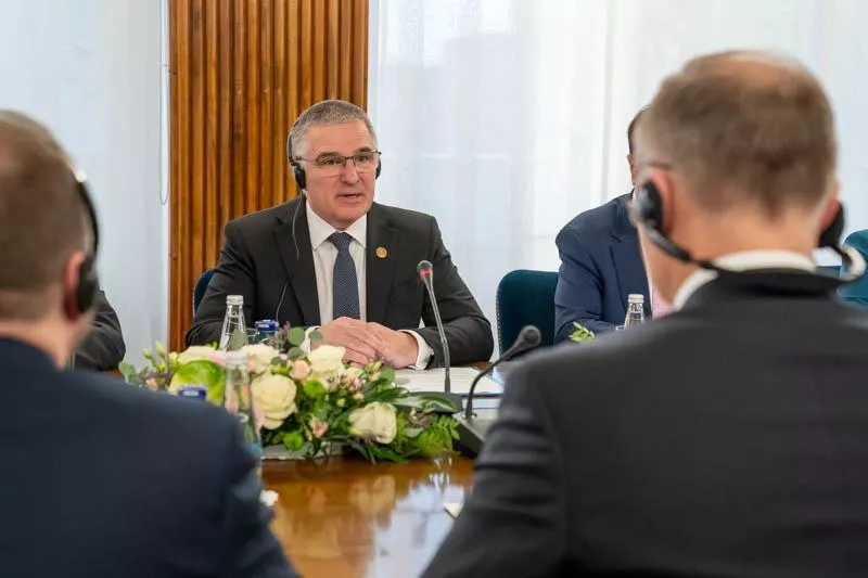 Ljubljana, 20. marec 2024 - Predsednik Državnega sveta Marko Lotrič z delegacijo, v kateri so bili s strani DS podpredsednik Državnega sveta Matjaž Švagan, državni svetnik, predsednik Komisije Državnega sveta za mednarodne odnose in evropske zadeve Bojan Kekec in sekretarka Državnega sveta dr. Monika Kirbiš Rojs, je sprejel predsednika Republike Poljske dr. Andrzeja Dudo z delegacijo, ki je na uradnem obisku v Republiki Sloveniji.