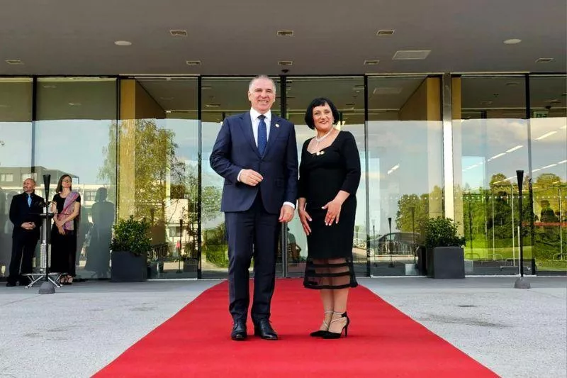 Brdo pri Kranju, 10. maj 2024 – Predsednik Državnega sveta RS Marko Lotrič in državni svetnik, predsednik Komisije Državnega sveta za socialno varstvo, delo, zdravstvo in invalide Danijel Kastelic sta se na povabilo državne svetnice, predsednice Zbornice zdravstvene in babiške nege Slovenije – Zveze strokovnih združenj medicinskih sester, babic in zdravstvenih tehnikov Slovenije Monike Ažman udeležila slavnostne akademije ob zaključku 19. Simpozija zdravstvene in babiške nege.