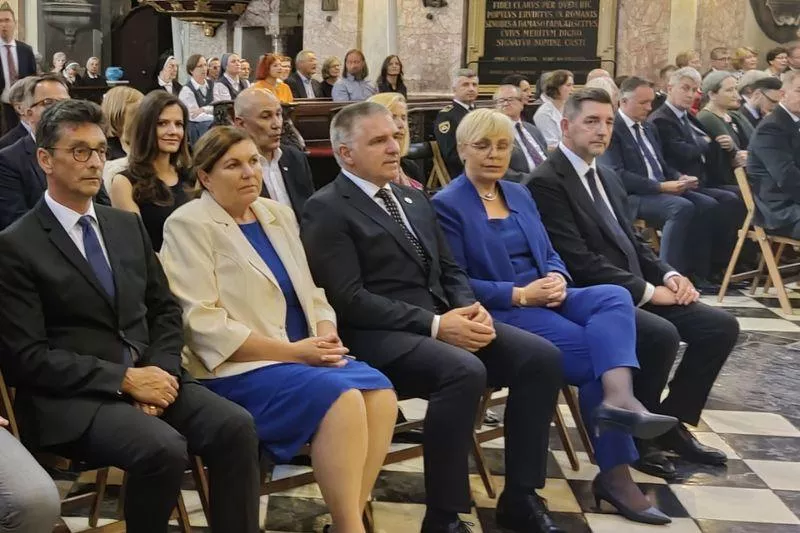 Ljubljana, 18. junij 2024 - Predsednik Državnega sveta RS Marko Lotrič se je s soprogo Mojco Lotrič udeležil svete maše za domovino, ki jo tradicionalno ob državnem prazniku dneva državnosti v stolni cerkvi sv. Nikolaja v Ljubljani darujejo slovenski škofje. Svete maše se je udeležil tudi državni svetnik Branko Tomažič.