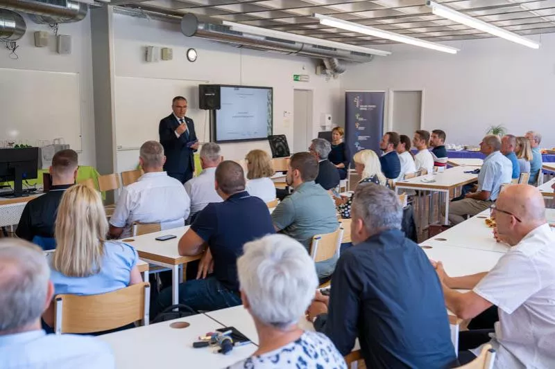 Kranj, 10. september 2024 - Predsednik Državnega sveta Republike Slovenije Marko Lotrič je nagovoril zbrane na dogodku Gradimo uspešne kariere skupaj, ki je namenjen povezovanju šole, njenih študentov in podjetij, z namenom ustvarjanja boljših pogojev za uspešno karierno pot mladih.