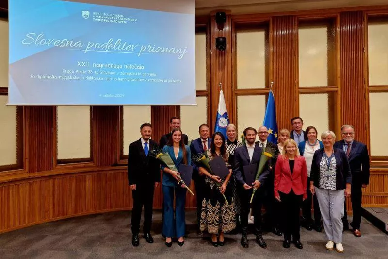 Ljubljana, 4. oktober 2024 – V dvorani Državnega sveta RS je potekala slovesna podelitev priznanj XXII. nagradnega natečaja Urada Vlade RS za Slovence v zamejstvu in po svetu za diplomska, magistrska in doktorska dela na temi Slovencev v zamejstvu in po svetu. Zbrane sta nagovorila podpredsednik Državnega sveta MatjažŠvagan in podpredsednik Vlade RS, minister za Slovence v zamejstvu in po svetu MatejArčon .